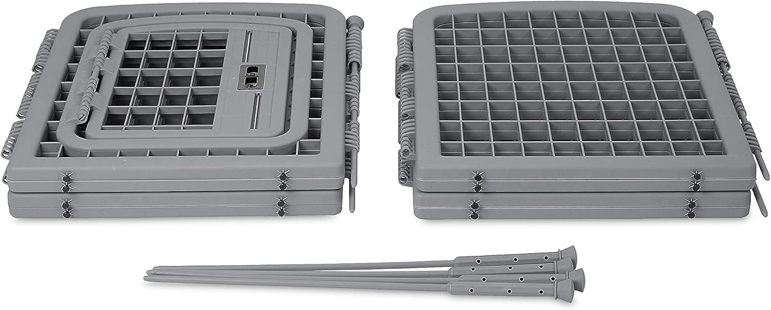 The molded plastic panels are sturdy, weather-resistant, and free of sharp edges. Unlike metal pens, they do not rust and remain safe for sensitive or small animals.