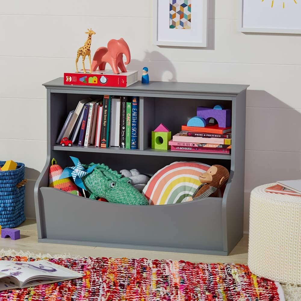 Keep your child’s playroom neat and inviting with the Amazon Basics Children’s Multi-Functional Bookcase and Toy Storage Bin. Designed for maximum organization and accessibility, this versatile unit features two open cubby shelves, two tilted bins for toys, and a flat top shelf for books or décor. Its kid-friendly height allows little ones to reach and store their items easily, encouraging independence and tidiness.