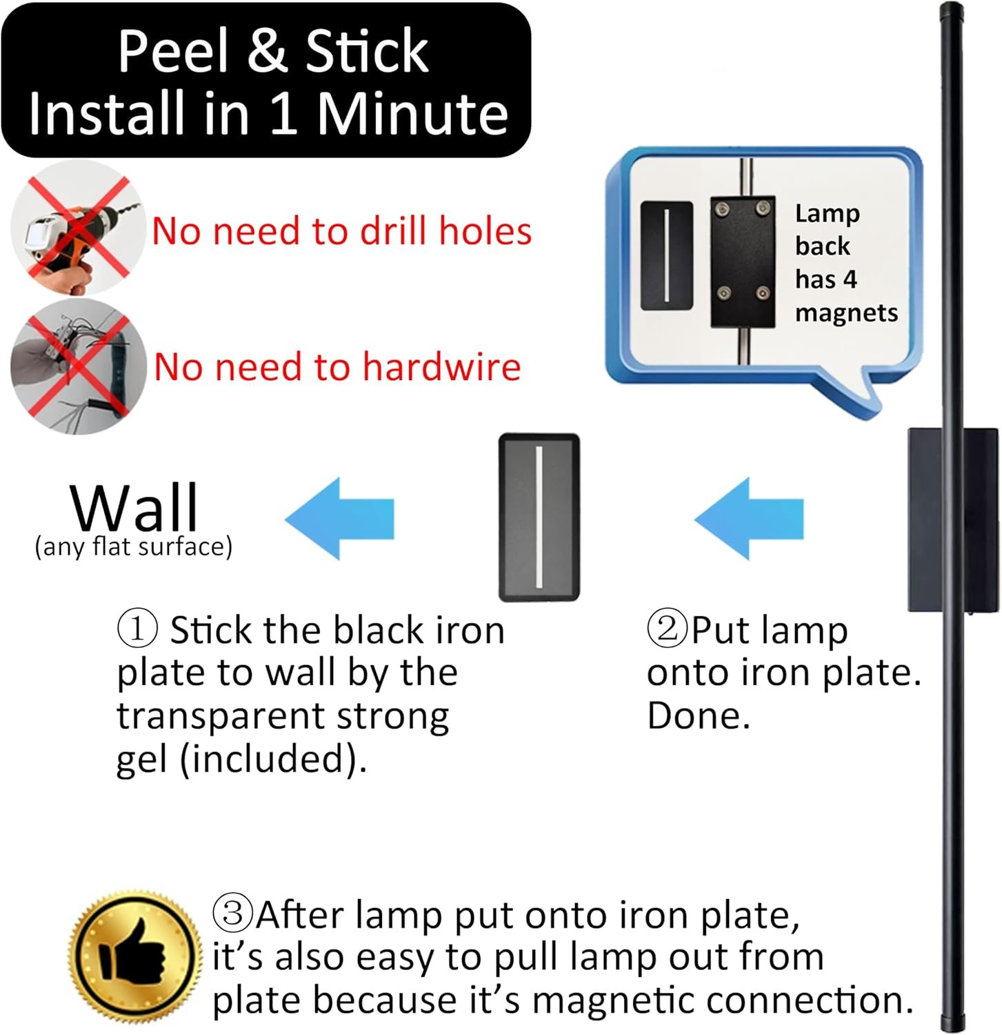 Enhance your home’s ambiance with the Reddragon Lighting Peel-and-Stick Rechargeable Magnetic Wall Sconces. This set of two 28.3-inch black sconces offers a sleek, modern design suitable for various indoor spaces. Featuring adjustable brightness and color temperature settings (cold white, warm white, neutral white), these sconces provide customizable lighting to suit your mood. With easy installation options—including magnetic mounting and strong adhesive—these sconces are perfect for renters or those seeking a hassle-free setup. Enjoy up to 150 hours of illumination on a single charge, making them both energy-efficient and convenient. Ideal for living rooms, bedrooms, corridors, and more. Illuminate your space effortlessly with these versatile wall sconces.