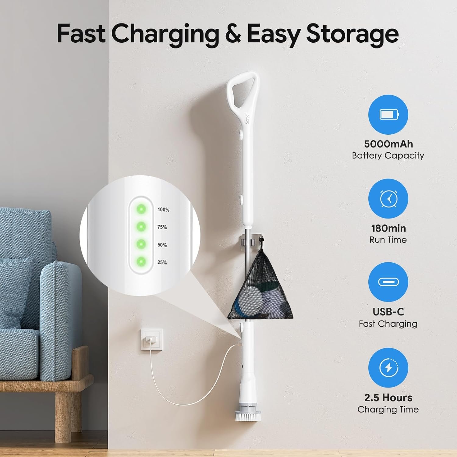 The Sorpci Electric Spin Scrubber is a powerful cordless cleaning brush designed to make home cleaning effortless. Equipped with a 5000mAh rechargeable battery, three adjustable speed modes, and seven replaceable brush heads, it easily tackles dirt, soap scum, and stains on multiple surfaces. Its extendable handle (24–48 inches) and waterproof design provide convenience and durability for bathrooms, kitchens, floors, and more. A reliable choice for keeping your home spotless with less effort.