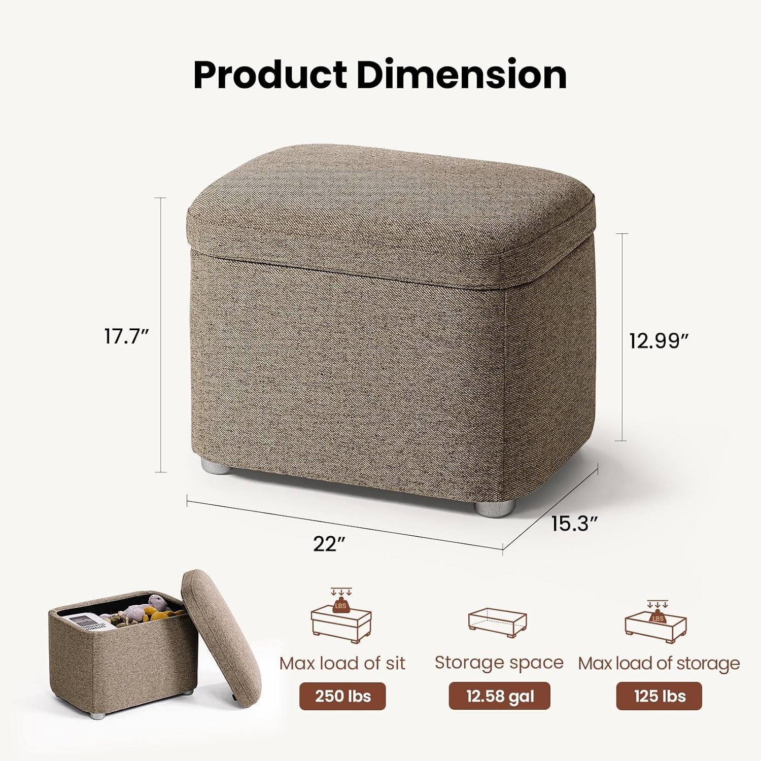 This 22.4-inch storage ottoman combines functionality with contemporary design. Its detachable lid provides easy access to hidden storage, perfect for organizing living spaces. The ultra-soft chenille upholstery, paired with resilient foam, offers comfort, while the sturdy solid wood legs ensure durability with a 330lb weight capacity. Ideal for small spaces, it serves as a footrest, extra seating, or a stylish accent piece. Assembly is quick and tool-free, making it a convenient addition to any room.