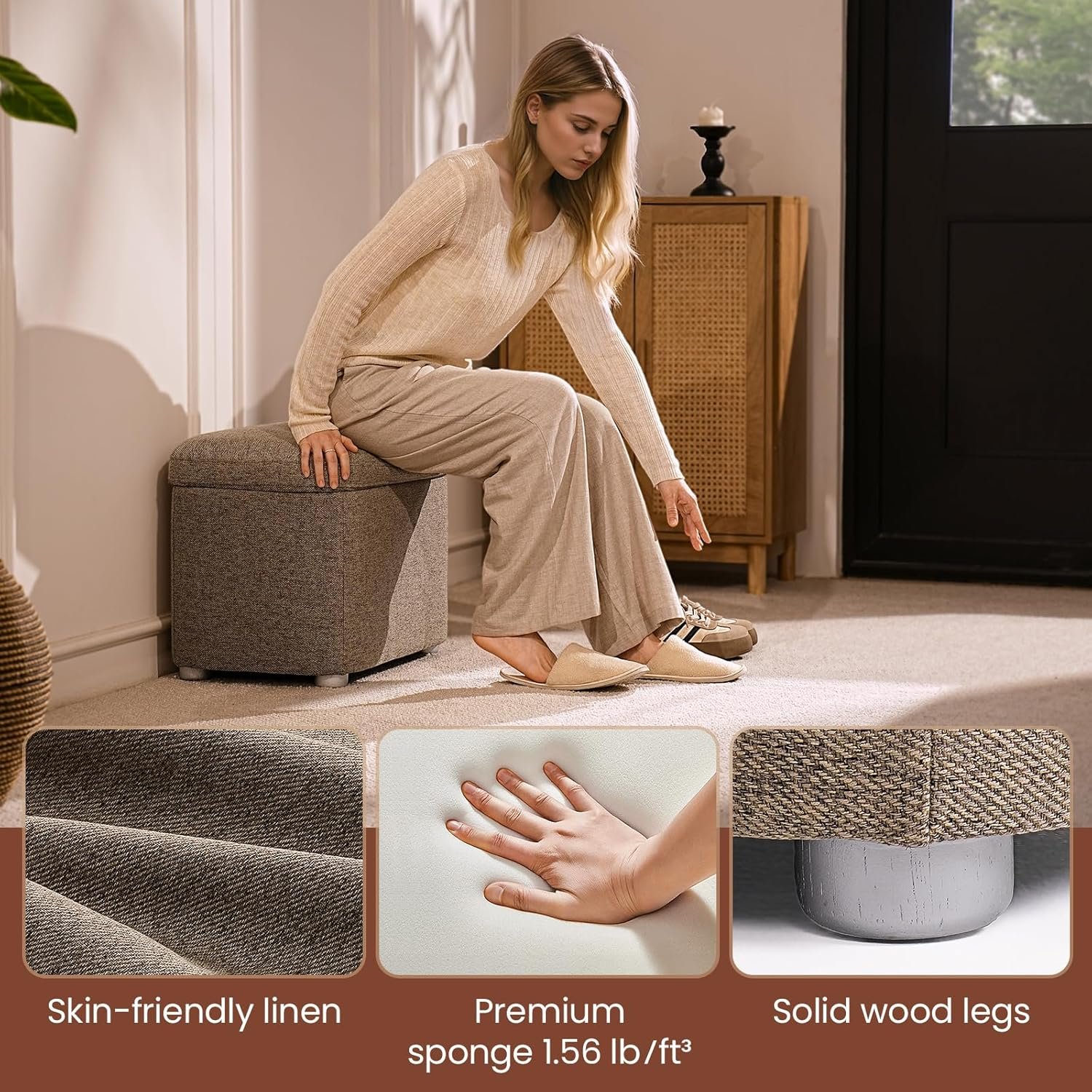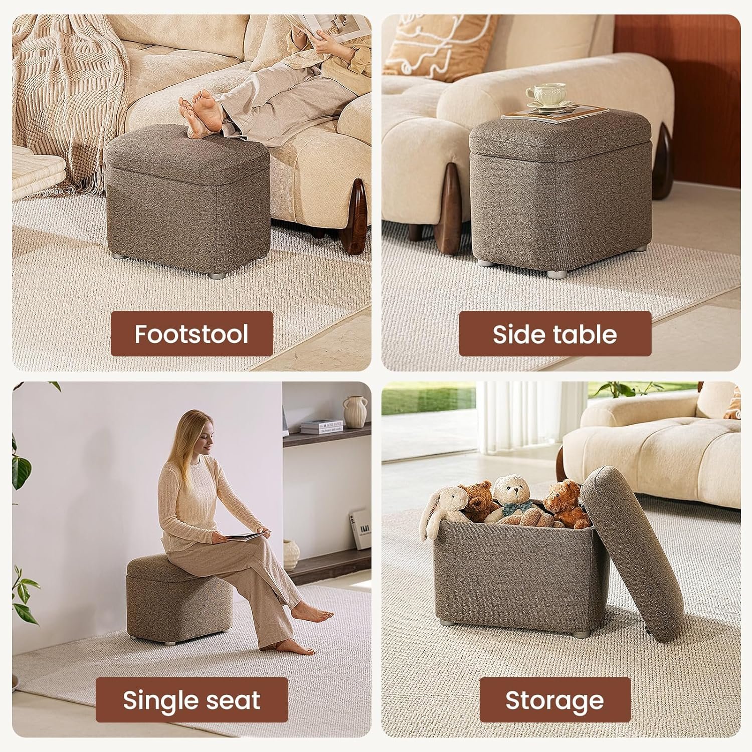 This compact storage ottoman combines style and functionality for any living space. Featuring a soft chenille cushion, a detachable lid for hidden storage, and sturdy solid wood legs with a 330lb weight capacity, it’s perfect as a footrest, extra seating, or accent piece. Add this versatile ottoman to your home to enhance comfort and organization effortlessly.